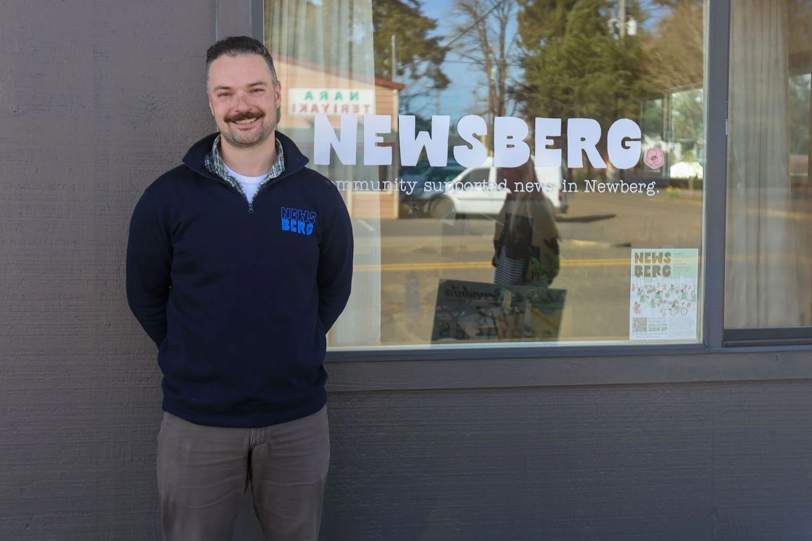 Branden Andersen stands proudly outside the Newsberg headquarters, the face of a digital-first outlet redefining what local journalism can mean in a small Oregon town.