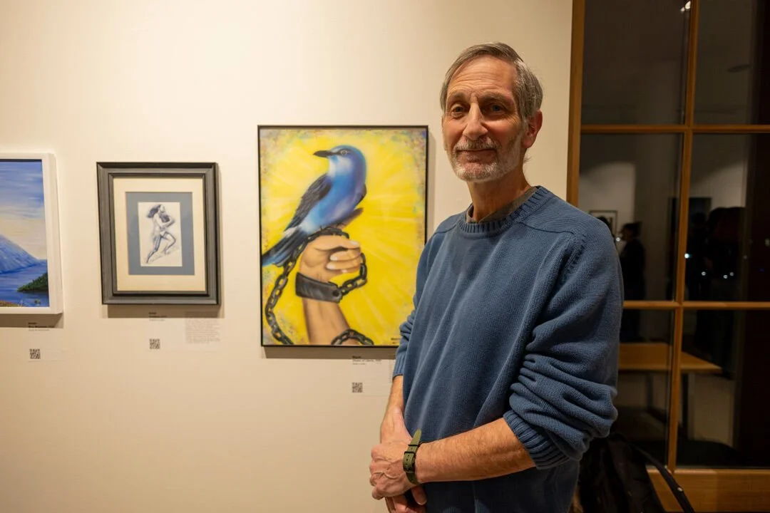 Shaul Cohen, the program director for PEP, attends the art exhibit "HOPE: A Human Right" on March 7, 2024. Photo by Alex Hernandez/Ethos